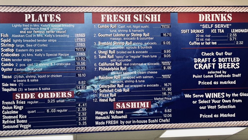 Point Loma Seafoods, located in San Diego, offers a wide range of fresh seafood options such as Bay Shrimp, Dungeness Crab, and Smoked Fish. Their seafood cocktails and soups like White Clam Chowder and Seafood Soup are highly recommended. Customers praise the quality of their dishes, like the combo seafood plate and codfish sandwich. The self-service system adds a unique charm to the dining experience. The market also provides fresh fish to cook at home. With a casual yet classy ambiance and a view of the bay, Point Loma Seafoods is a must-visit for seafood lovers. The attentive staff and fast service make dining here a pleasant experience. The variety of dishes, including salads and sandwiches, cater to different preferences. Don't miss out on the opportunity to enjoy fresh seafood in a picturesque setting.